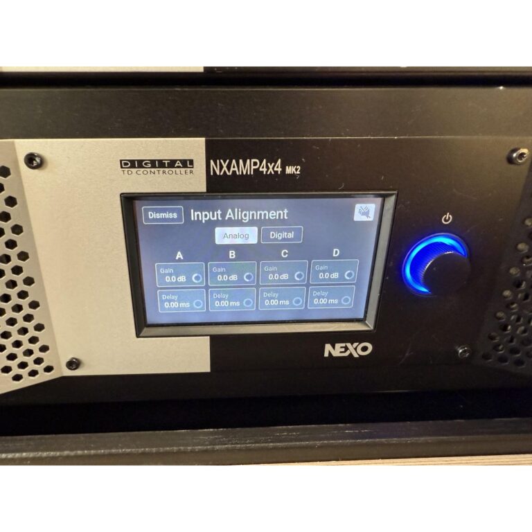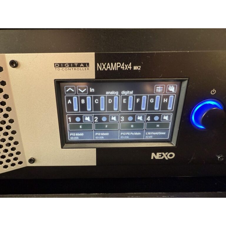The Nexo NXAMP4x4 MK2 is more than just an amplifier—it’s the brains and brawn behind any modern NEXO system. With its massive power output, intelligent DSP, touchscreen interface, and Dante compatibility, the MK2 gives audio professionals exactly what they need: power, precision, and peace of mind.